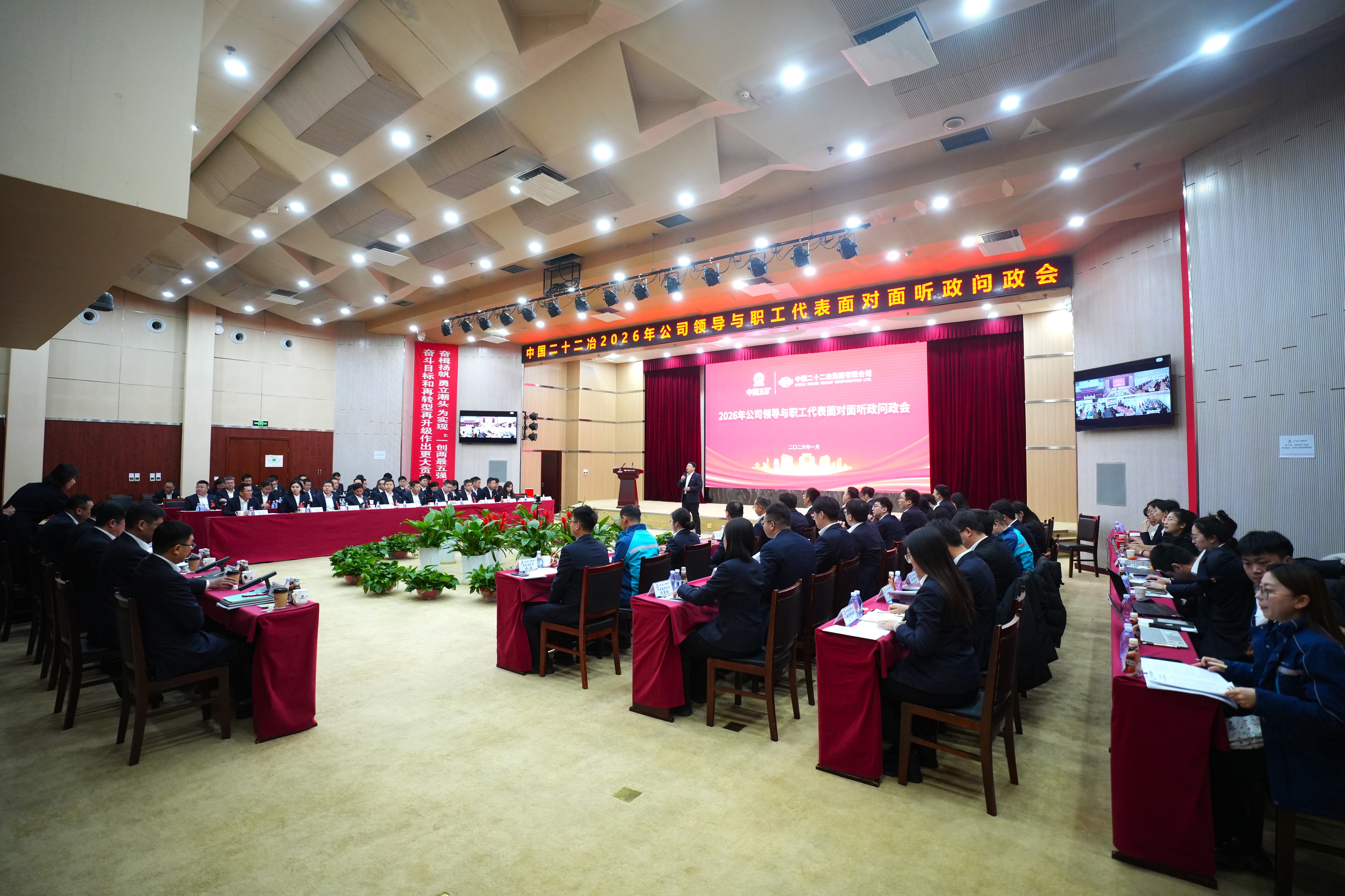 1月10日,中國二十二冶召開2026年公司領導與職工代表面對面聽政問政會,旨在以“開門納諫聽民意,敞開心扉聽心聲”的形式,問需于民、問計于民、問政于民,不斷深化廠務公開,及時了解職工所思所憂所盼,反映和破解公司生產(chǎn)經(jīng)營過程中的難題。中國二十二冶黨委書記、董事長袁斯浪出席會議并講話。
